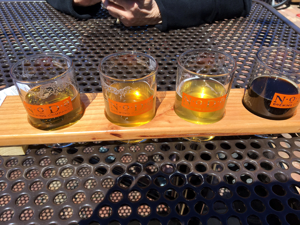 There were about 24 beers on tap when we visited, most of which were NoDa beers, but there were a few guest taps too (including a kombucha tea and a cider). Flights of four generous pours were available, but not all beers were eligible (most ineligibles were high-gravity beers), which is not a policy that I am fond of. The flight pours were provided in straight-walled glasses (think beer-fest) and most regular pours seemed to be in shaker pints, which definitely leaves something to be desired; there were multiple pour options for most of the beers (half-pints and pints). The beers that I tried- Hot Pistol (American Stout), OG Kolsch, Hop Experiment #9 Citra (Session APA), and If You Don’t Know, Now You Know (IPA), ranged from decent (Hot Pistol) to good (If You Don’t Know) in the order listed.
